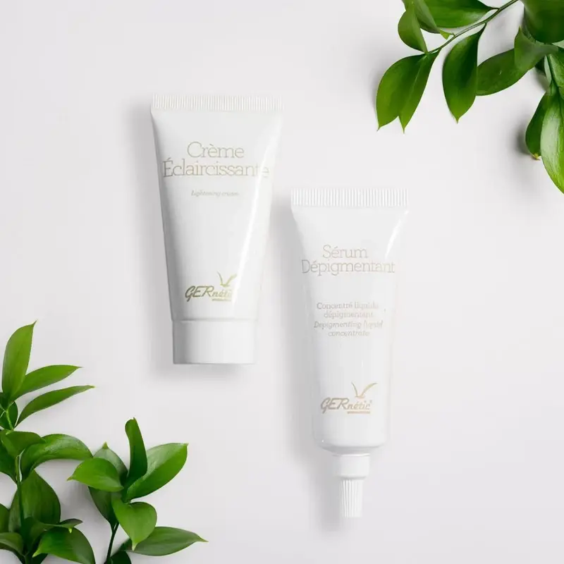 Creme Eclaircissante Gernetic - отбеливающий восстанавливающий ночной крем глубоко и мягко воздействуя на глубокие слои дермы, крем защищает от свободных радикалов, борется с потемнением кожи и предотвращает образование пигментных пятен. Используется с целью равномерного отбеливания обширных участков кожи, а также диффузно расположенных пигментных пятен (веснушек), имеющих размытые контуры.