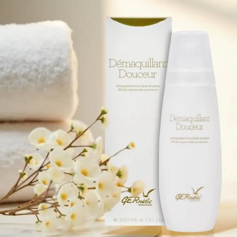 Demaquillant Douceur Gernetic - лосьон для удаления макияжа - очищение кожи и удаление макияжа с лица и области вокруг глаз для всех типов кожи. Этот мицеллярный лосьон-демакияж разработан для достижения очищающего, успокаивающего, регенерирующего, тонизирующего и стимулирующего эффектов.