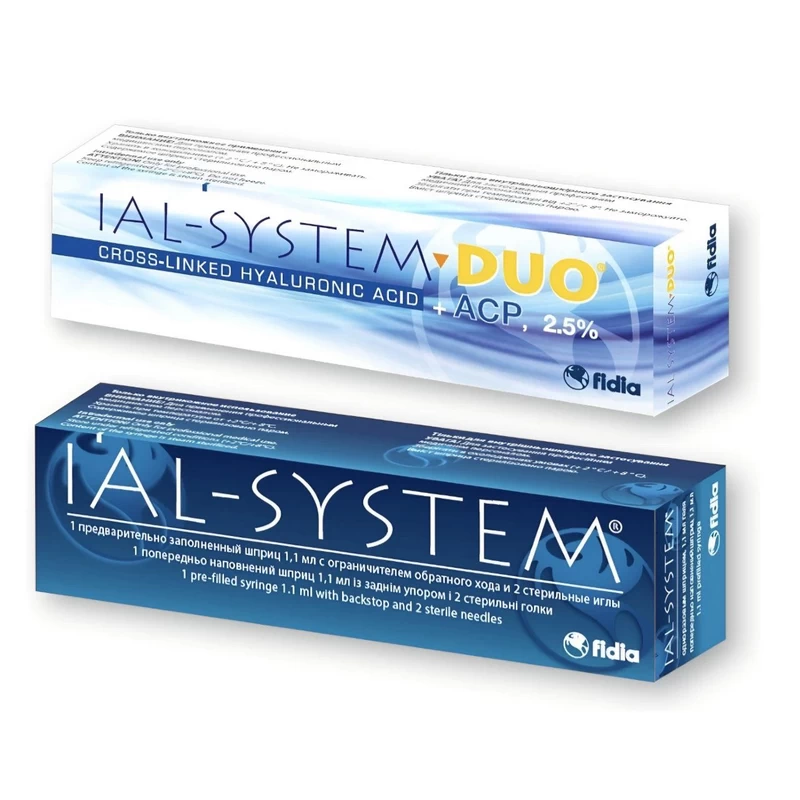 IAL System 1.8% — комплексный препарат на основе нативной гиалуроновой кислоты, разработанный итальянским брендом Fidia. Это очищенный, сильно вязкий, стерильный раствор соли натрия гиалуроновой кислоты низкого молекулярного веса, полученной биосинтетическим путём.