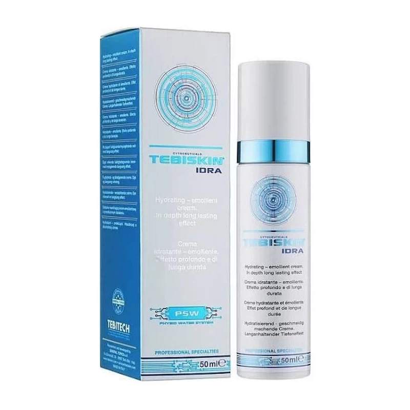 Увлажняющий смягчающий крем Idra Сream Tebiskin легко наносится, быстро впитывается и на длительное время увлажняет глубокие слои кожи. Мочевина эффективно смягчает огрубевшую кожу и связывает воду в ее поверхностном слое. Яблочная кислота оказывает мягкое смягчающее действие, способствуя удалению отмерших клеток. Натуральный ингредиент метилсульфонилметан (MSM) обладает выраженными смягчающими свойствами, устраняет ощущение зуда и дискомфорта. Благодаря комплексному действию мочевины, яблочной кислоты и MSM крем обладает высокой специфической эффективностью.