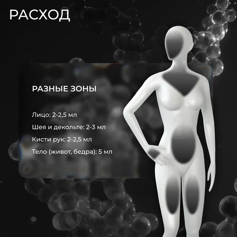 - Комплекс пептидов в паре с PDRN обеспечивает антиоксидантную защиту, стимуляцию деления фибробластов и неоколлагеногенеза, тормозя при этом работу матричных металлопротеиназ.